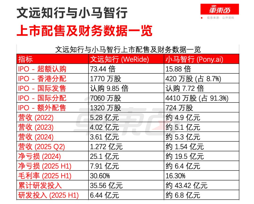 ▲文远知行与小马智行上市配售及财务数据一览