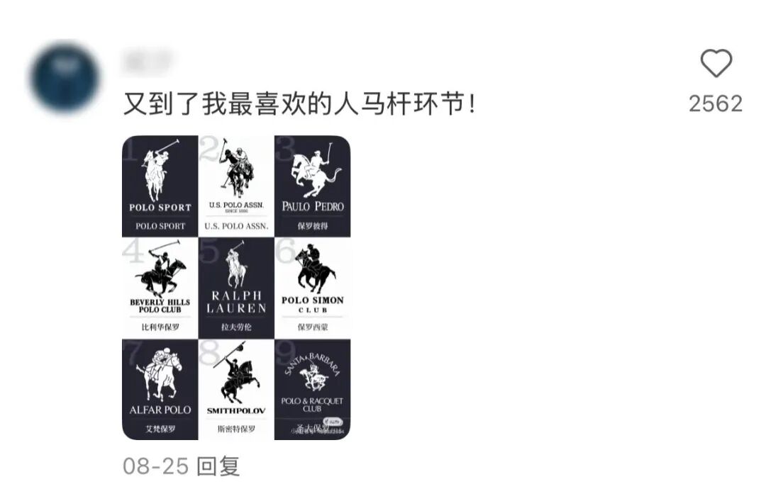 经典的POLO衫系列,硬是被仿成了“保罗遛弯”(区别大概是一个感觉要去打球,一个感觉要去打人)。
