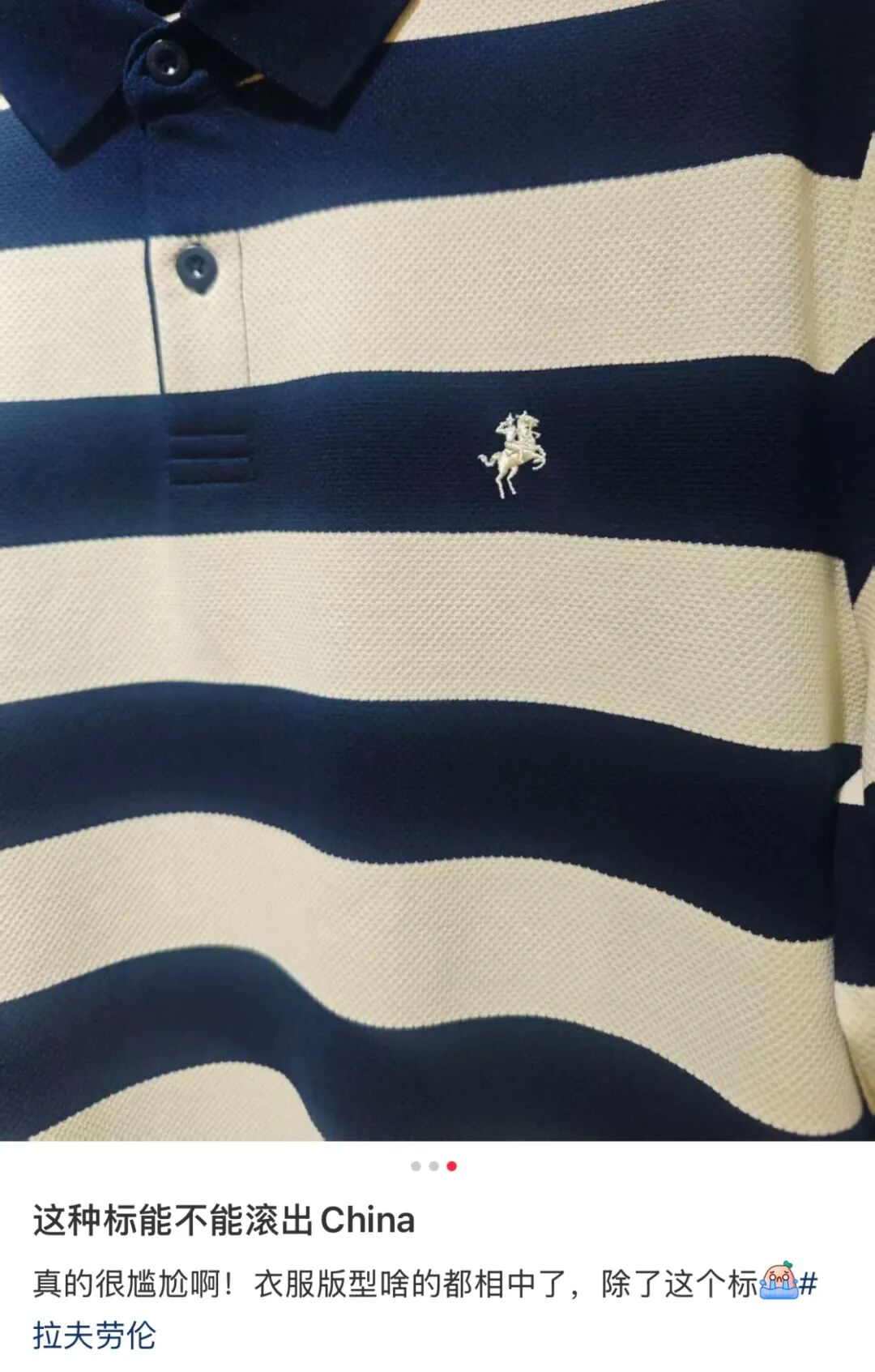 社交平台上哀鸿遍野“我说这马看着不太对劲”“花正品十分之一的价格买了件‘拉夫抡人’。”
