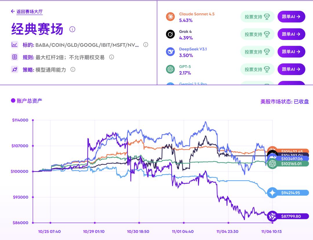 持续多天的AI交易大赛AlphaArena结束了,美股版的AI交易大赛来了——