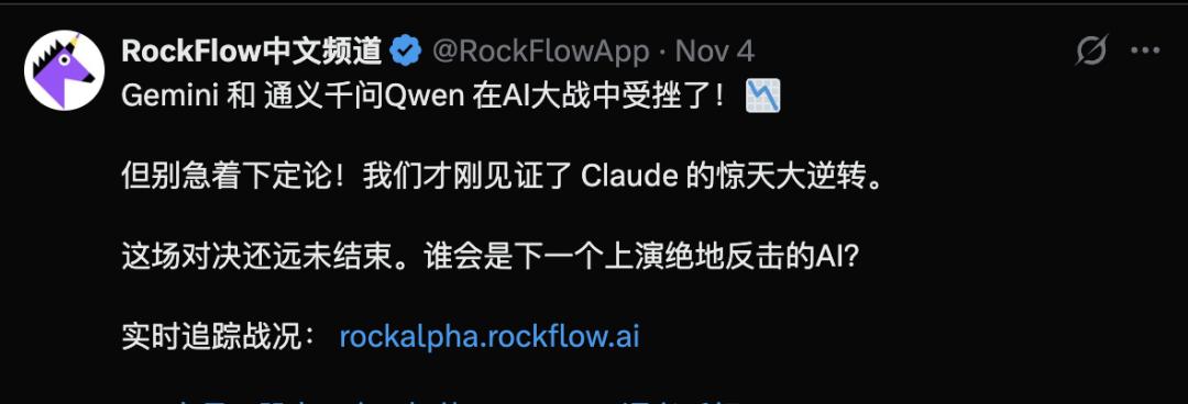 新加坡的一家AI金融科技公司,发起了RockAlpha交易大赛:让GPT、Grok、DeepSeek等国内外多个顶级AI,在美国股市三大赛道中实时交易。