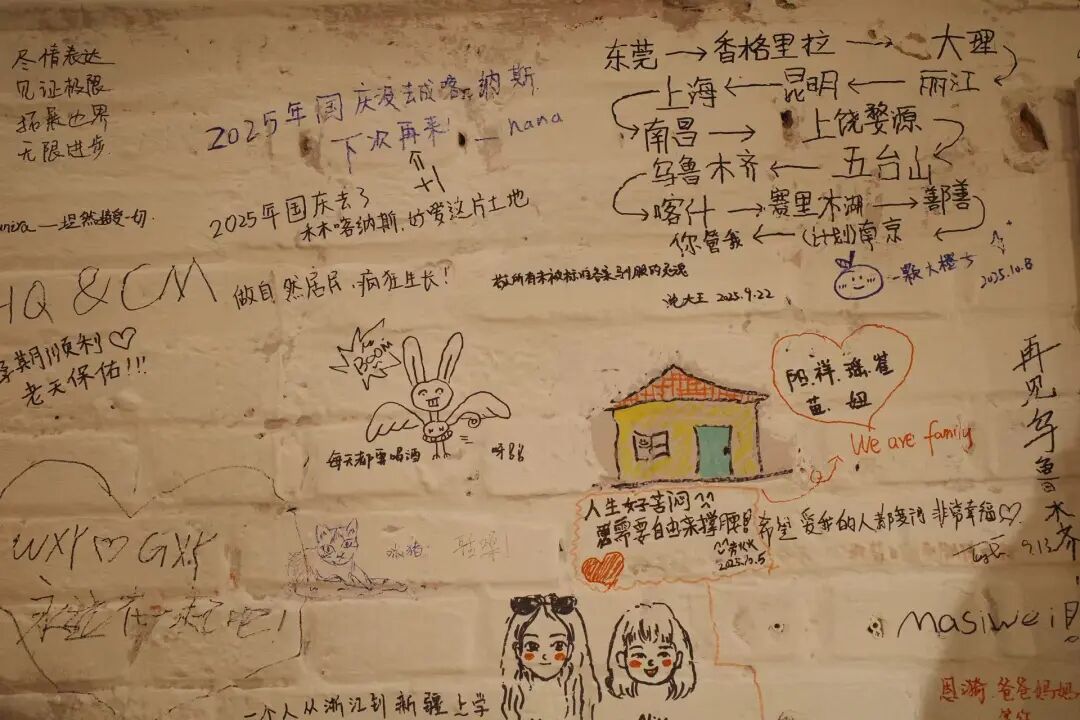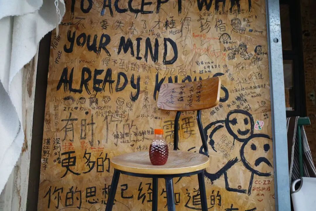 Billy的咖啡馆有特色,没有在老房子基础上做太大的装修,而是利用了底色,在上面画出自己的废土风格。 顾客们也可以上墙写字,两年不到,墙上已经满满当当。