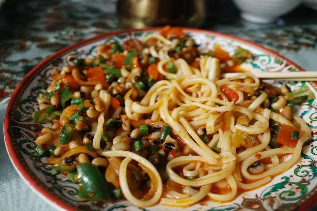 咖啡馆11点就开门,晚上7点收工,我们磨磨蹭蹭成为了最后一个顾客。 猛男老板介绍我们去旁边吃拌面,我们这几天吃了无数盘拌面,巨大的盘子巨大的量,还能免费加面,永远吃不厌。