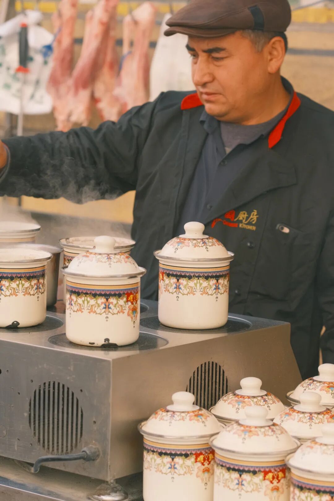 吃了韧性十足的拌面,香喷喷的手抓饭,最爱的奶皮子酸奶,喝了酸溜溜的石榴汁,跟一旁等着的路人说,试一试,试一试,然后哈哈笑着走开。