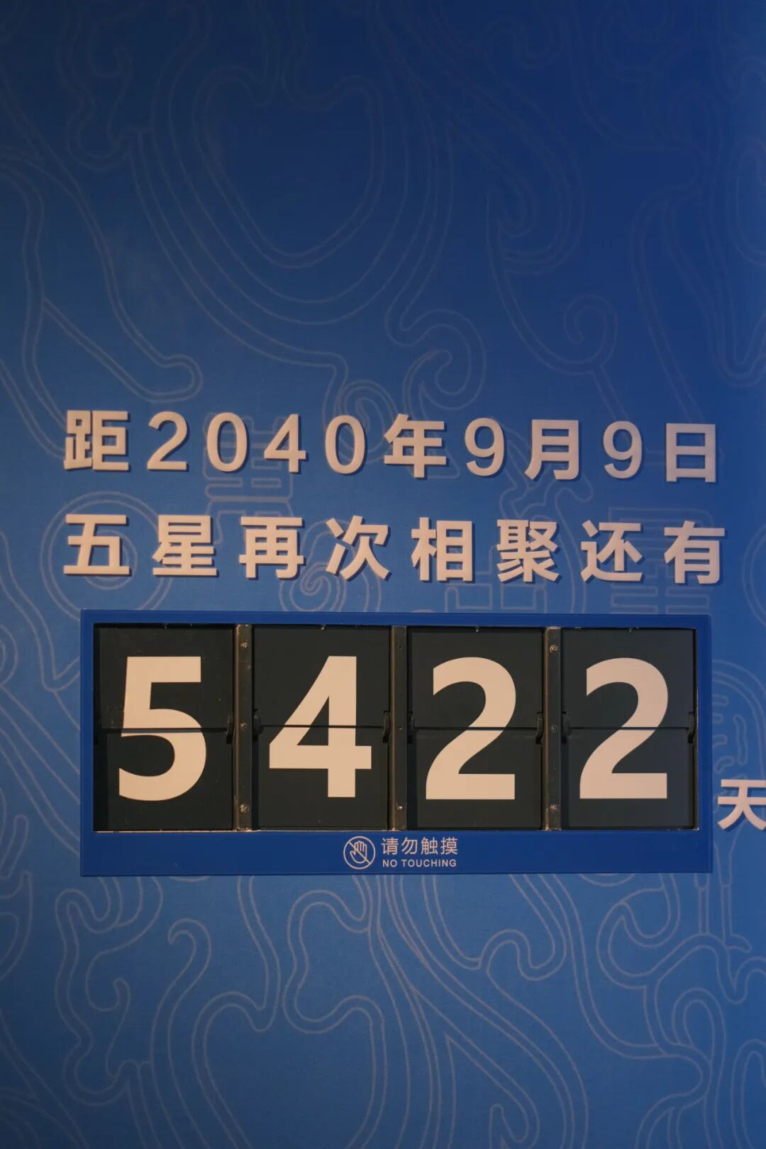 据说,上一次出现这样的天象,是1921年,而在下一次,是在2040年。 博物馆里还陈设着下一次五星俱全天象的倒数,大概是5000多天。