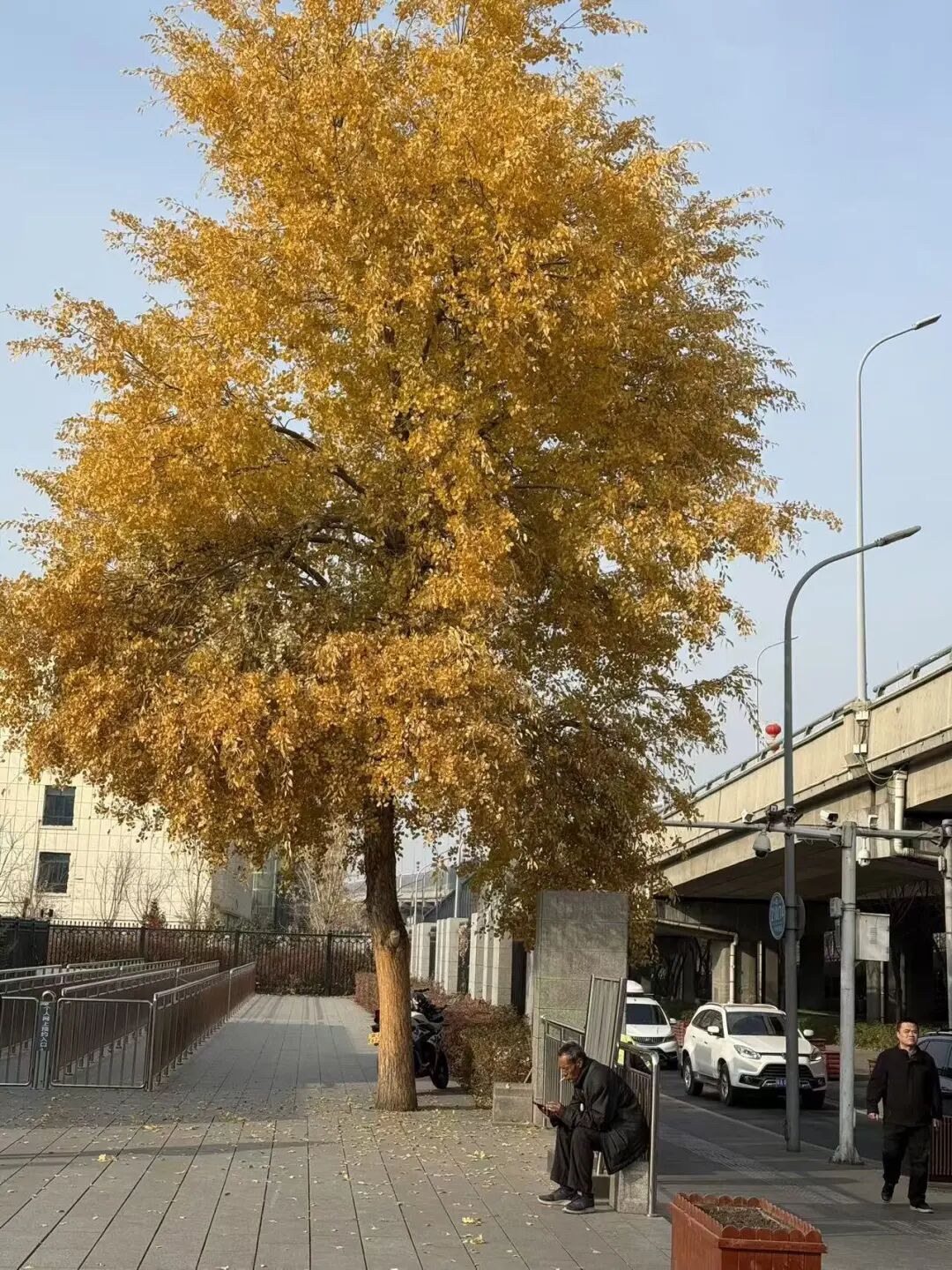 走出博物馆,外面有一棵漂亮的金黄色的树,我按下了快门,留住了下雪前秋意满满的瞬间。