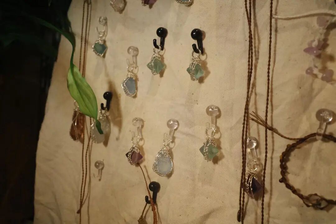 Billy的专业也没漏下,店里卖水晶挂饰和银戒指,我们看中了老板娘带的一款,她直接取下来,漂亮海蓝宝,让人平静,也让人难忘。