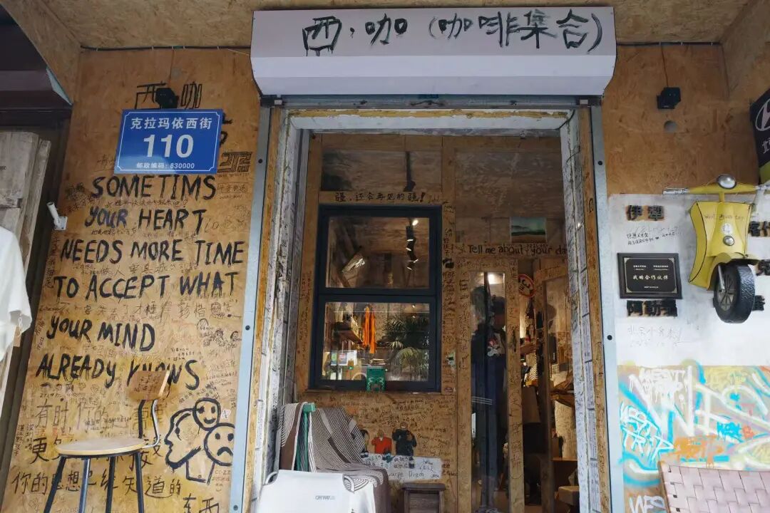 吃完饭,主食太猛了,已经醉碳。 我们打个车去到克拉玛依西街,在新疆大学和新疆博物馆附近。 本是一个多民族的融合社区,这两年倒成了一条文艺街道。