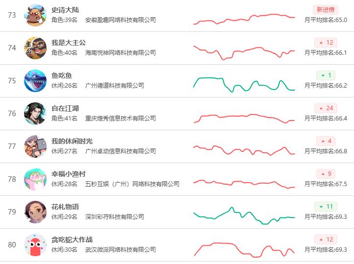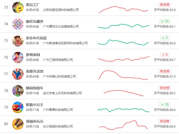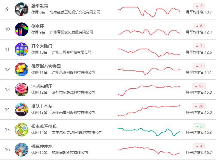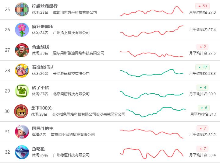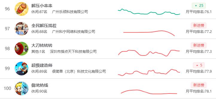 10月小游戏百强榜出炉:点点互动、名臣健康、芒果TV、两类题材是热点