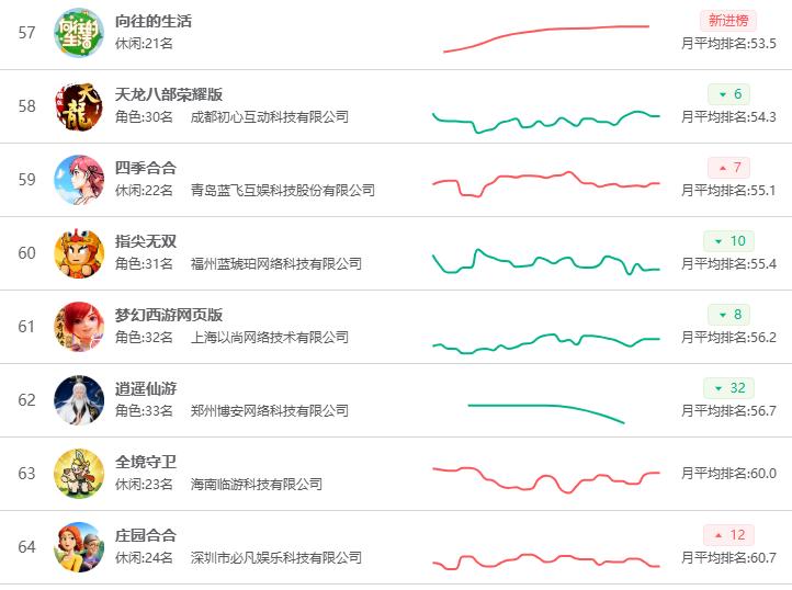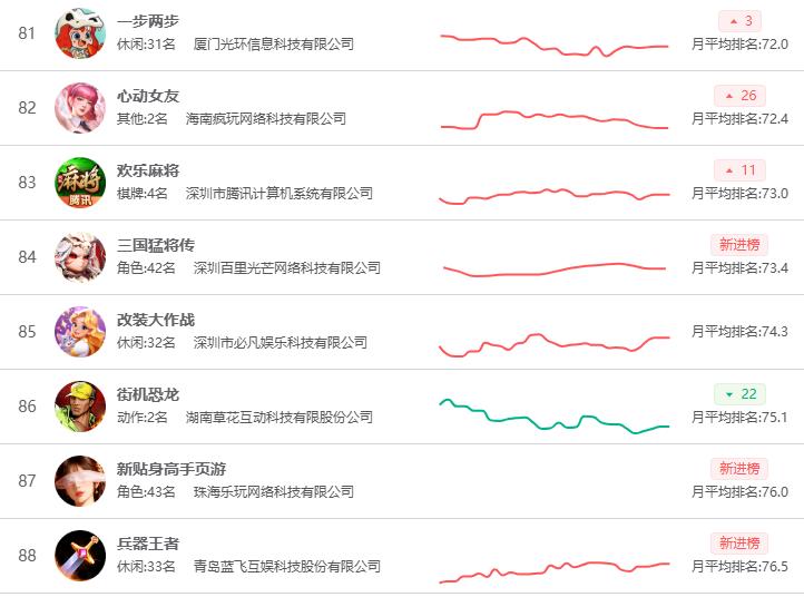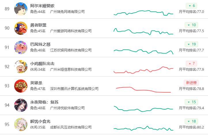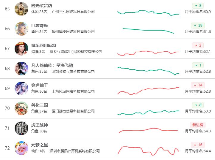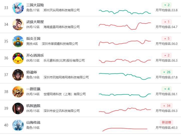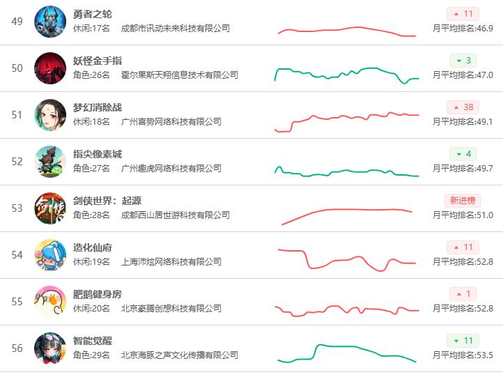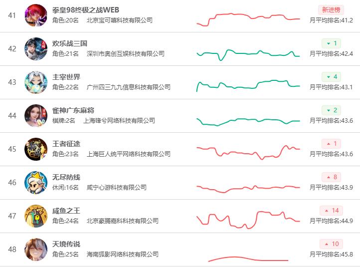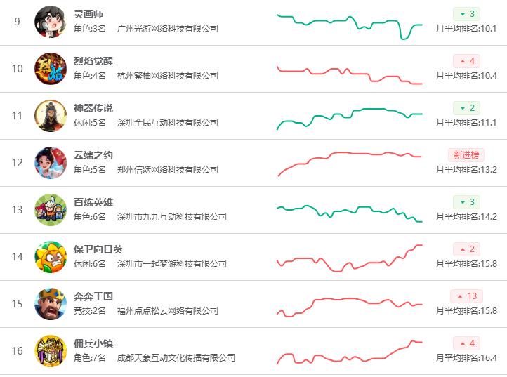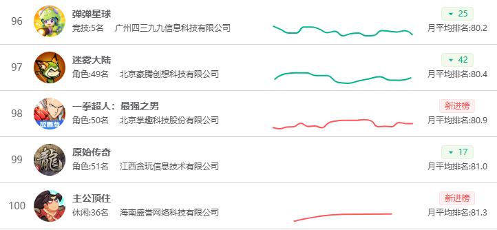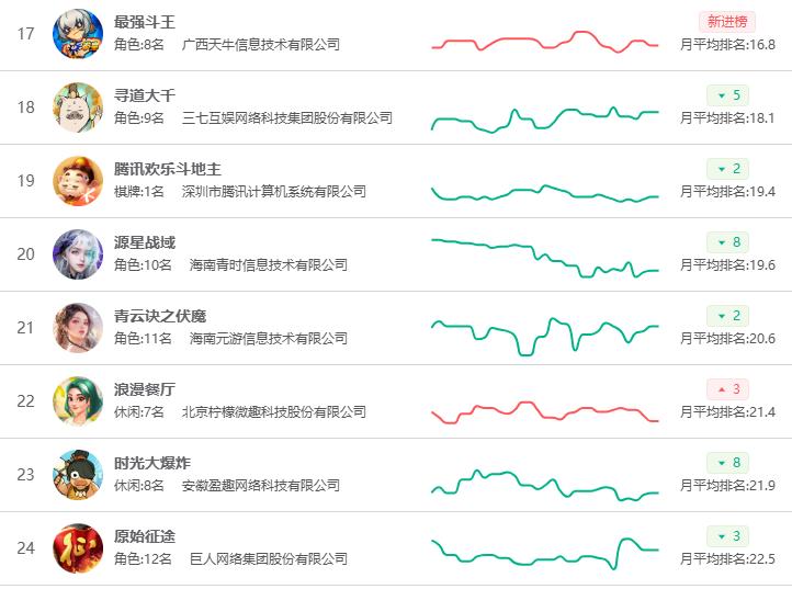 新游中,《云端之约》《最强斗王》 表现突出, 分别排名月榜第12名和第17名。其中, 《最强斗王》发行商广西天牛背后为名臣健康。