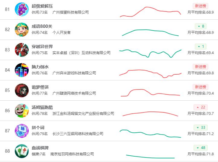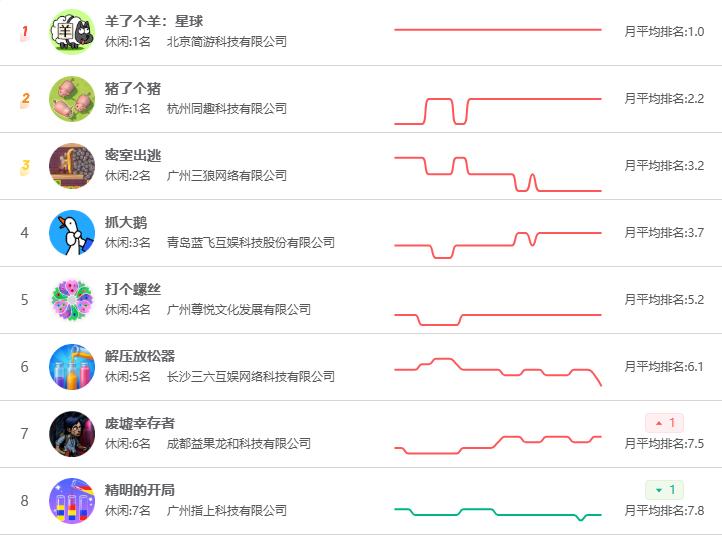 根据该游戏2025年10月排名平均值得出,变化为环比2025年上个月排位。