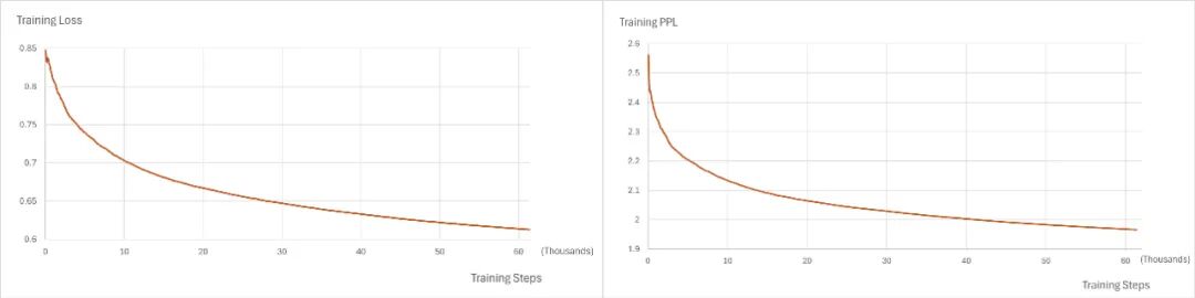 BigBang-Proton 有 1.5B 参数,训练损失和困惑度(perplexity)曲线在 61,381 步内表现出一致、平滑且单调的收敛,证明了在整个预训练过程中学习的稳定性和有效性。
