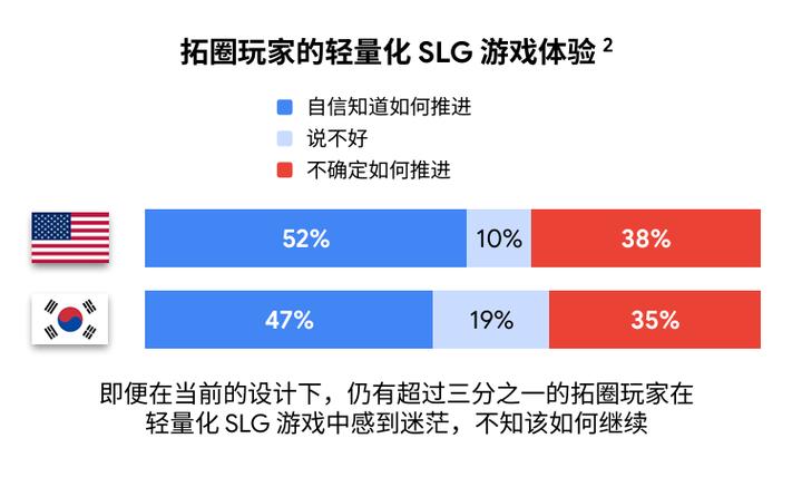 不过值得注意的是,即便如今的轻量SLG游戏在很多人看来已经非常简单,但根据《洞察》的数据显示,仍会有超过三分之一的拓圈玩家在游戏中感到迷茫,不知该如何继续。