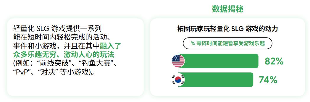 根据《洞察》的数据显示,有近三分之一的资深玩家下载轻量SLG,就是因为这些游戏提供了新的刺激。