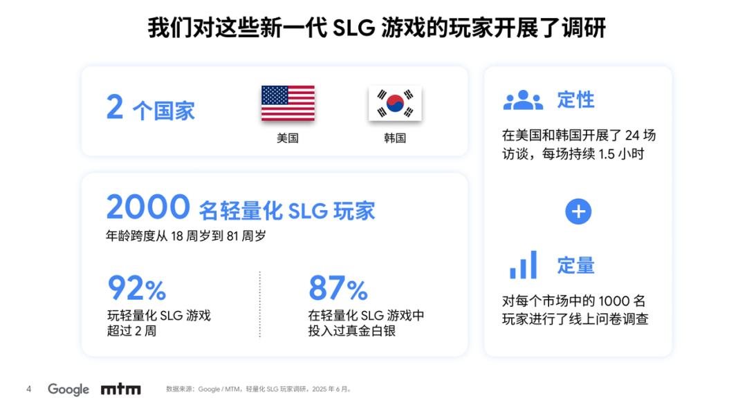 而最近,Google又发布了研究美韩市场的《轻量化SLG玩家洞察》(下文简称《洞察》),拿出了更加详细的数据,以及大量基于真实海外玩家的访谈内容(文末有完整报告可供下载)。