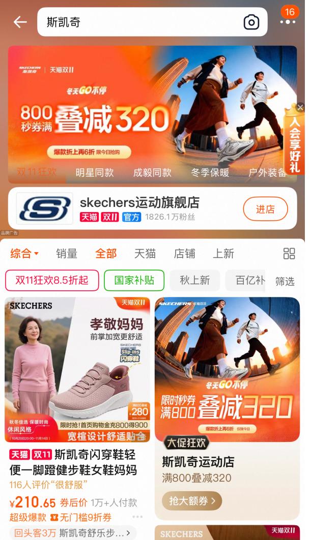 但这几年,斯凯奇在年轻人面前悄悄失宠,在淘宝搜索“斯凯奇”,弹出的第一个广告商品,明明白白告诉你,“孝敬妈妈,送斯凯奇”。