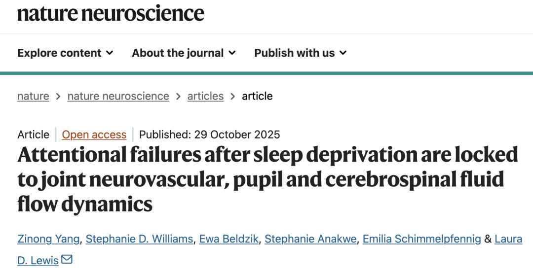 更关键的发现在于大脑的内部变化。睡眠不足的志愿者走神时,脑脊液会出现异常流出;当注意力恢复,脑脊液又会回流。