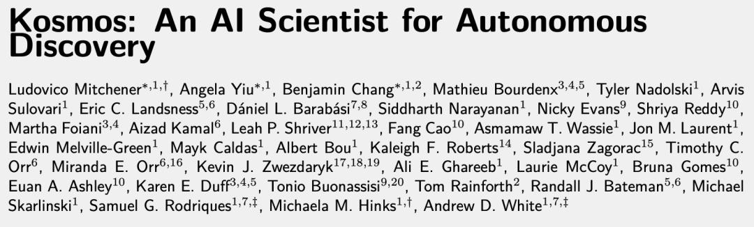 就在大家对此充满疑问的时候,一位名为Kosmos的「AI科学家」横空出世,用震撼的成果给出了初步的回答。