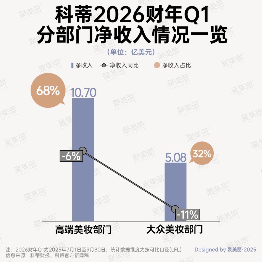 值得注意的是,财报还显示,大众美妆部门报告营业亏损770万美元(约合人民币5485.25万元),上年同期报告营业收入为1400万美元(约合人民币9973.18万元),报告的亏损率为1.5%。2026财年Q1调整后营业利润率为0.3%,较上年同期调整后营业收入利润率4.3%有所恶化。