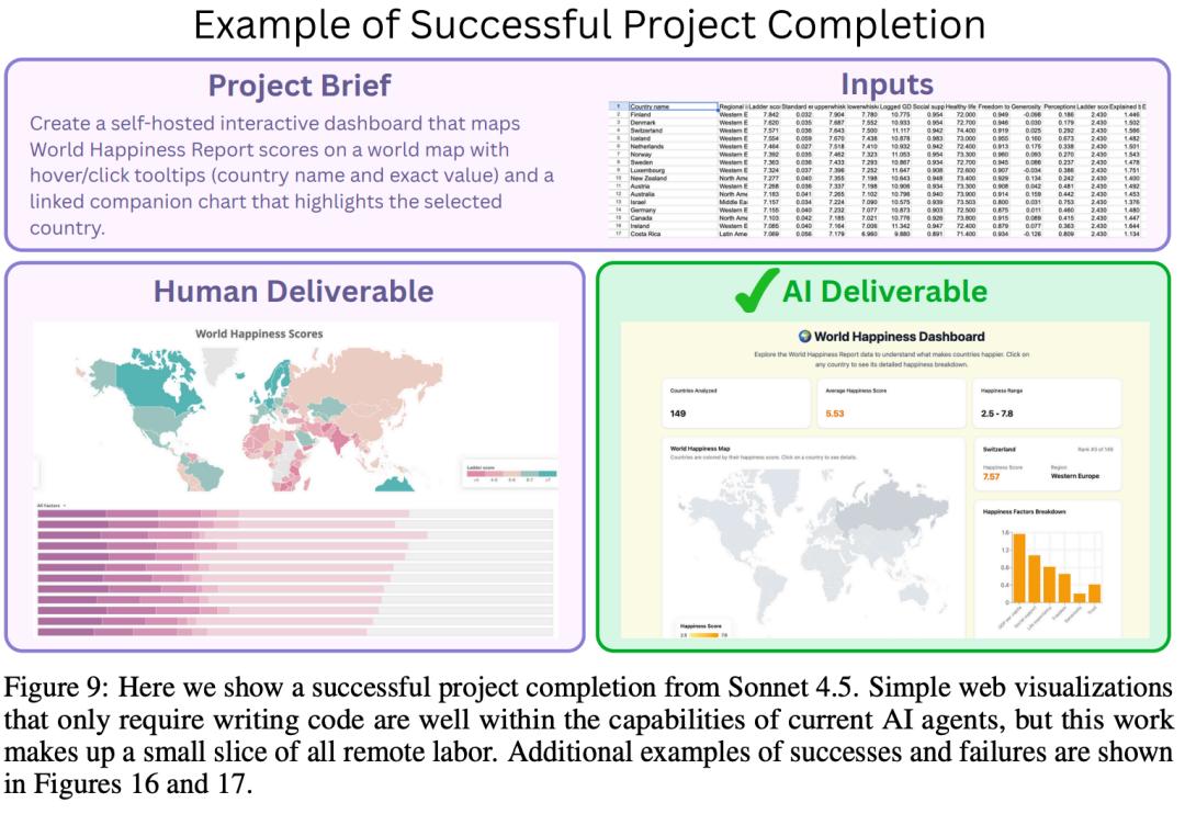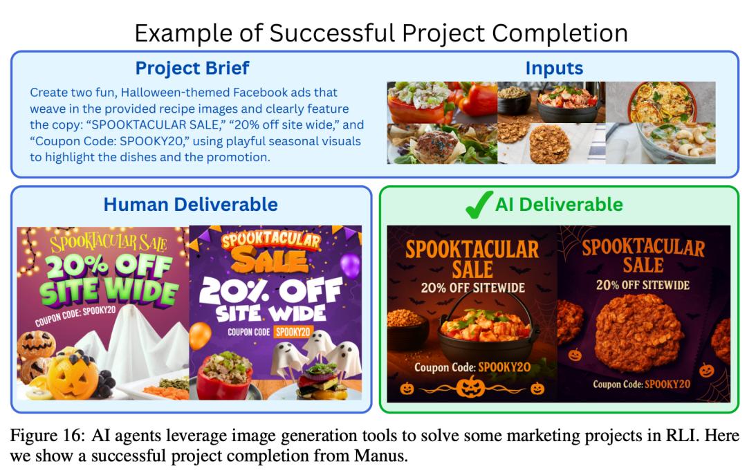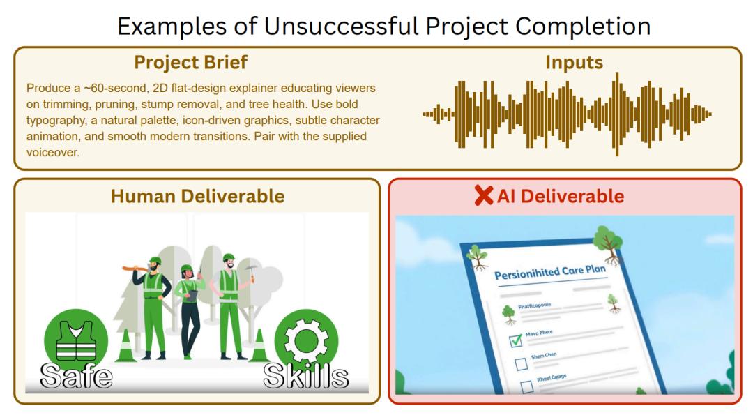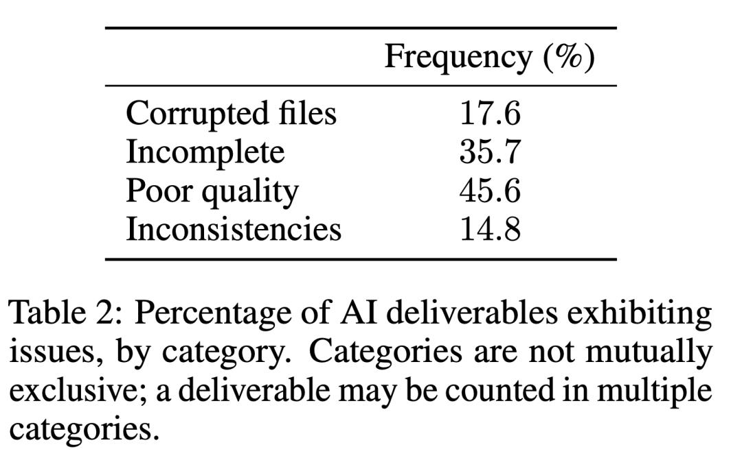 在评估流程中,针对每个RLI项目,研究团队都会对AI交付成果进行检验——