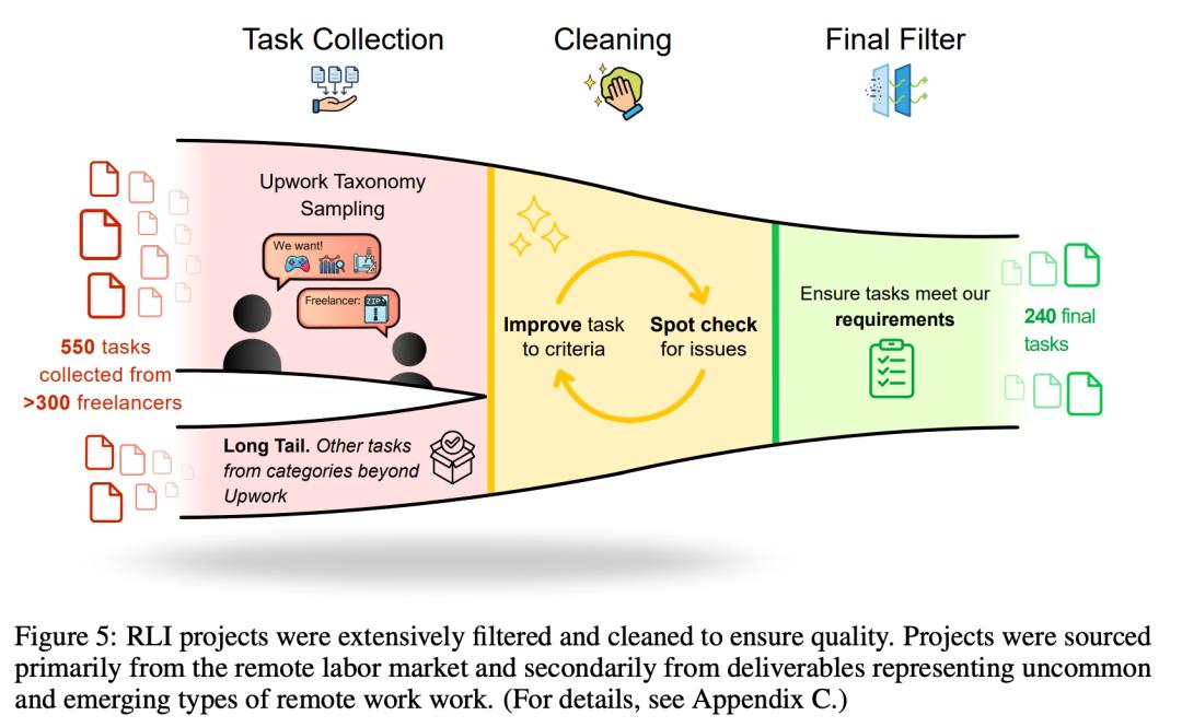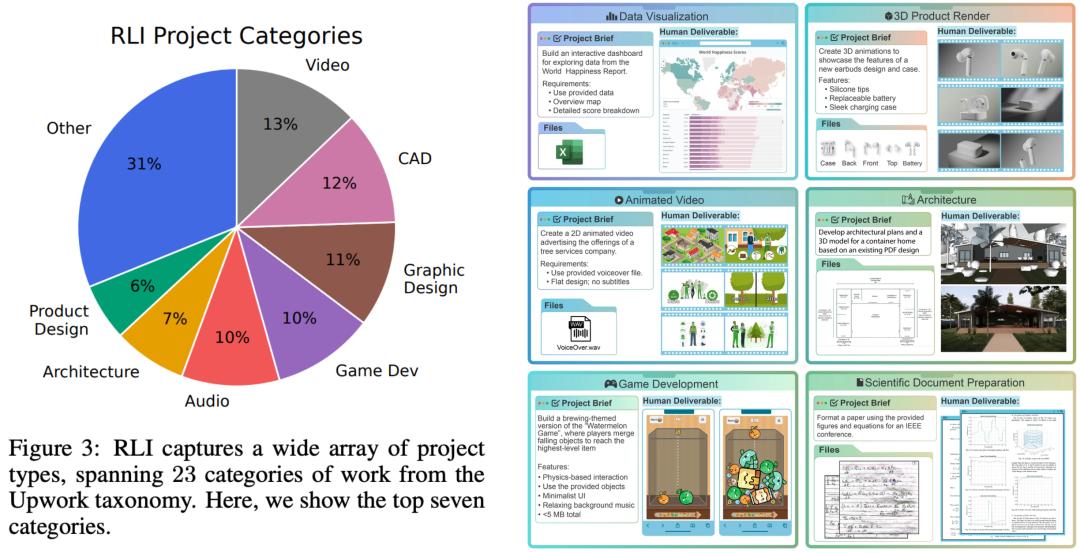 为此,团队从这些自由职业者中,收集了550个初始项目,最终筛选出包含240个项目的RLI数据集。