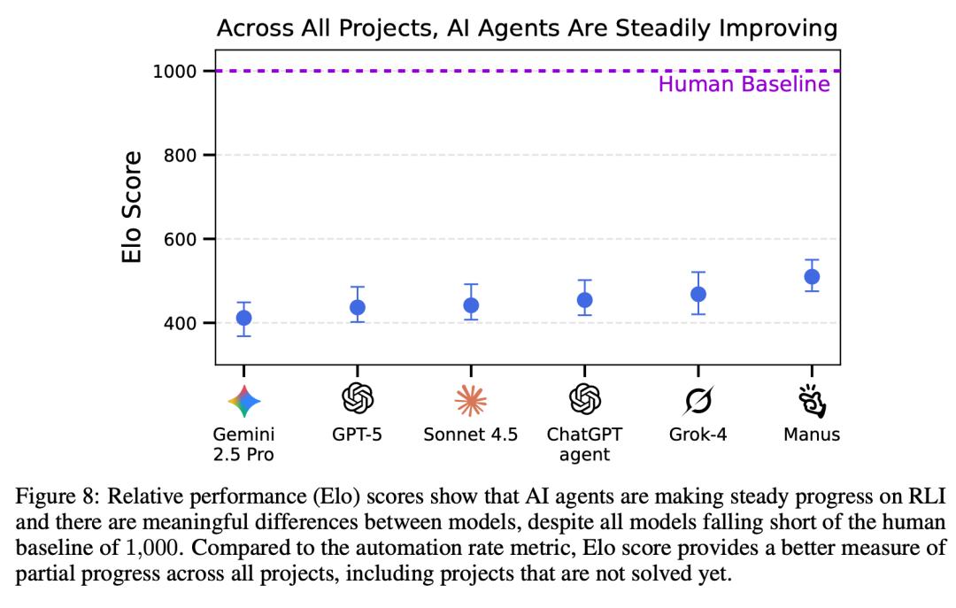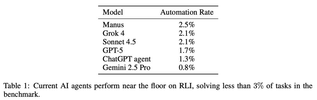 RLI最新研究,告诉所有人一个事实:AI离取代人类复杂劳动,还差得很远。