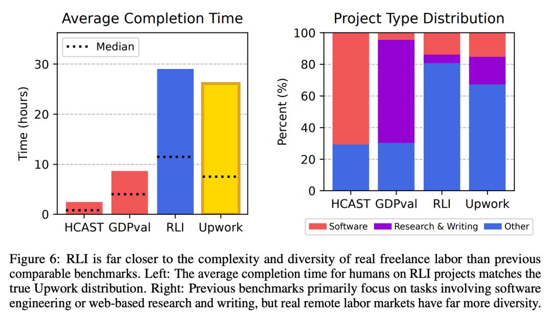 RLI全部数据,都来自真实自由职业者的历史订单。总计超6000小时的真实工作量,总价值超14万美元。
