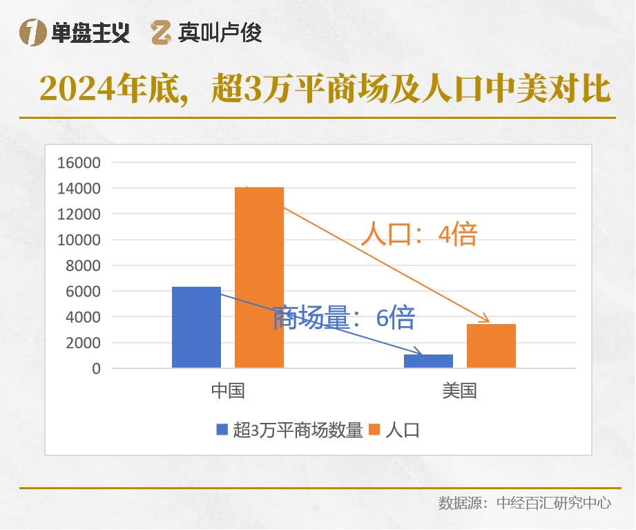 而且,消费行为发生根本转变。到2024年底,中国已拥有近7000个面积超过3万平方米的购物中心,数量是美国的6倍。
