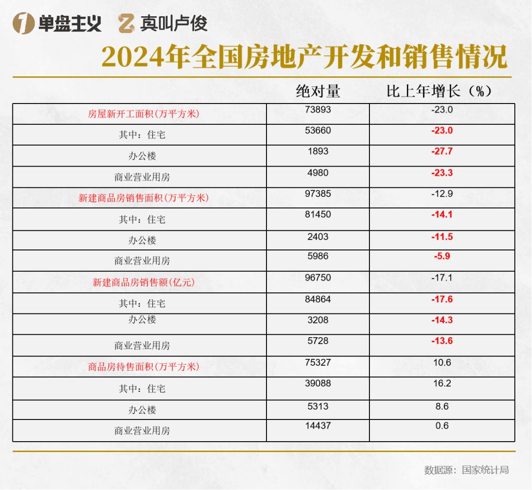 从2024年国家统计局的数据来看,在地产市场环境整体下调的时候,商业地产就是增量减速最慢的部分。