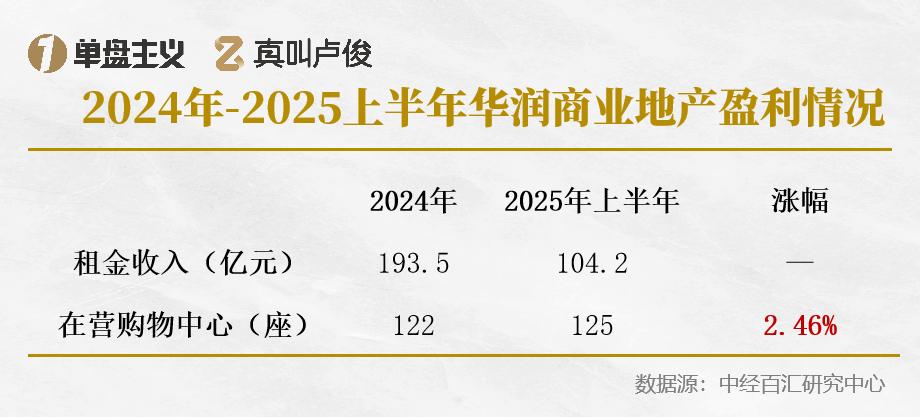 2024年,华润置地购物中心租金收入达193.5亿元,同比增长8.4%。这一增长势头在2025年上半年得以延续,其购物中心租金收入同比增长9.9%至104.2亿元。
