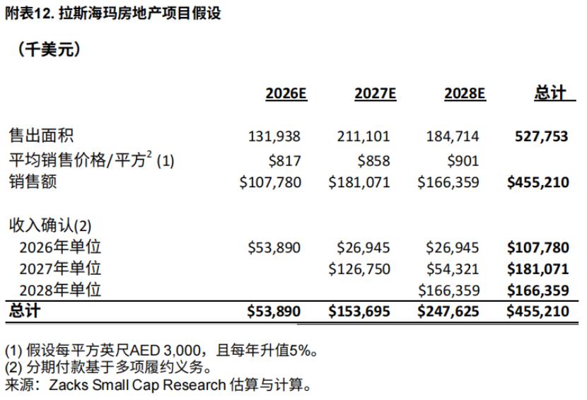 Zacks为拉斯海玛地产项目未来销售、营收转化所作的假设