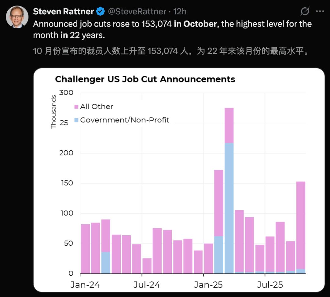 153,074个岗位,在一个月内全部裁减,比2024年同期高出175%。