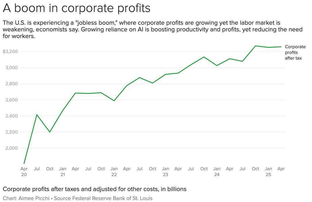 AI自动化取代人工、关税增加带来的成本压力,以及整体经济疲软,这些形成合力,让企业不得不「瘦身」。