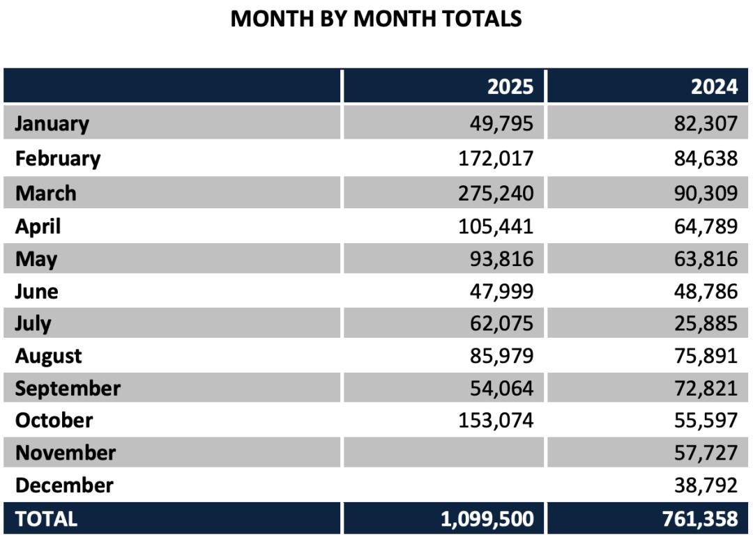 10月份这个总数,是自2003年10月之后,同月里最高的。