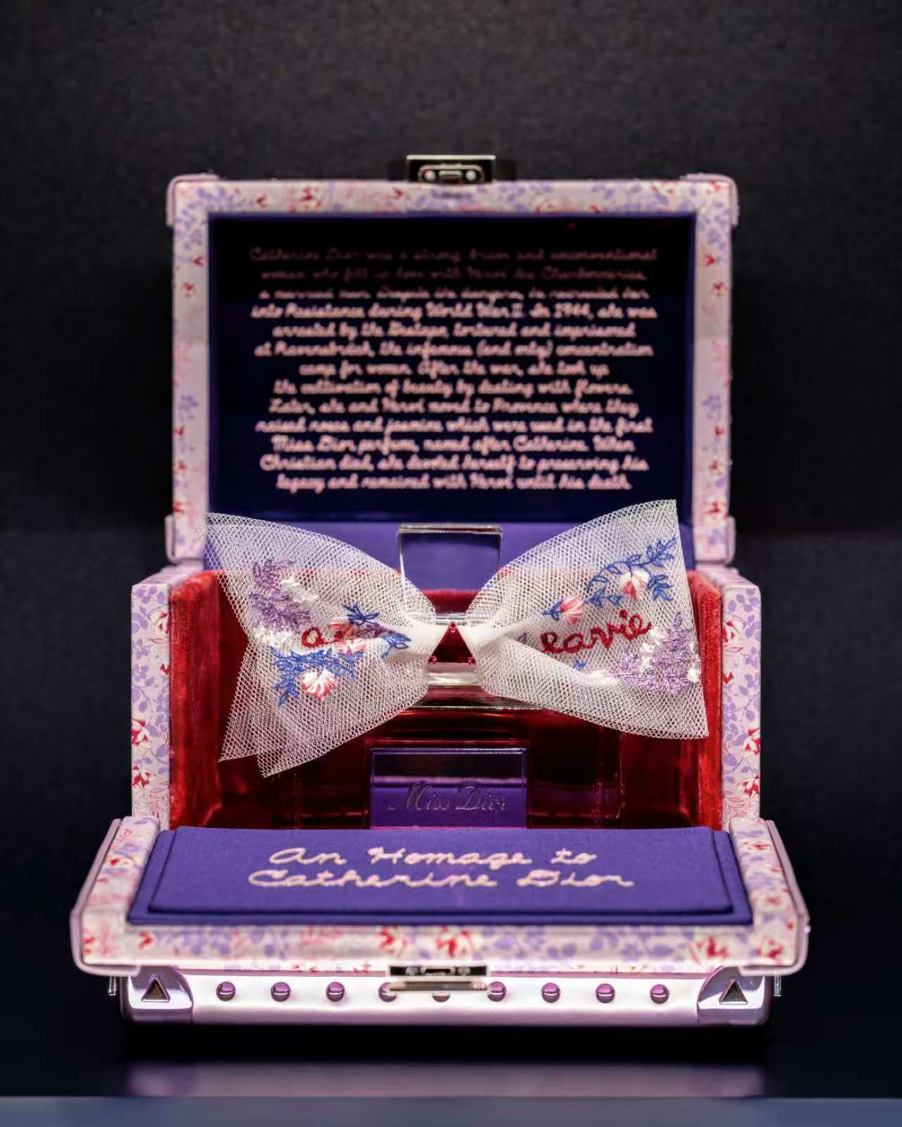 最后,在本次进博会中,还特设了一座“LVMH 迷你博物馆”,集中呈现集团旗下品牌的经典佳作与创新匠艺。 迪奥于此呈献两款代表作品:其一为中国艺术家鞠婷赋新演绎的经典 LADY DIOR 手袋,该作品灵感源自动态艺术的表现原理,由起伏波动的面板构成,营造出动感十足的律动效果与视觉错觉,专为 2025 年度的“DIOR LADY ART #10”艺术家限量合作系列打造;另一件为美国艺术家朱迪•芝加哥(JUDY CHICAGO)为迪奥小姐香水创作的香氛收藏箱,箱体饰以繁花图案与春意色彩,致敬迪奥先生的妹妹、迪奥小姐香水的永恒缪斯卡特琳娜•迪奥(CATHERINE DIOR)。