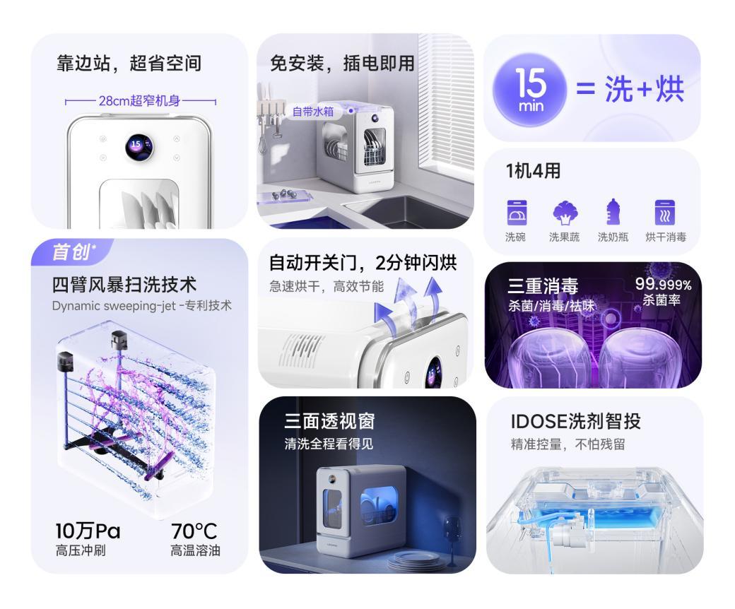 技术带来的底层创新也让胶囊式洗碗机R1实现功能的突破。“我们在R1上搭载了智能模块,让它具备自动开门2分钟闪烘的功能,以前,这一功能往往存在于万元以上的高端机型。”Steve表示。“我们还首创反冲洗洗碗液自动投放技术,破解了行业洗涤剂易堵塞的难题,一次投放可管超两周的清洗。”