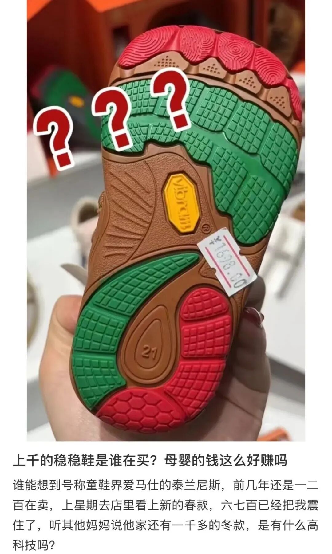 以“稳跑鞋”为例,其技术配置几乎对标成人顶级户外鞋:采用Vibram黄金大底、T700航天级碳板、巴斯夫鞋垫等高端材料……同等配置的成人鞋,普遍售价在2000元以上。