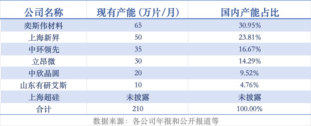 各家厂商12英寸硅片产能现状如下: