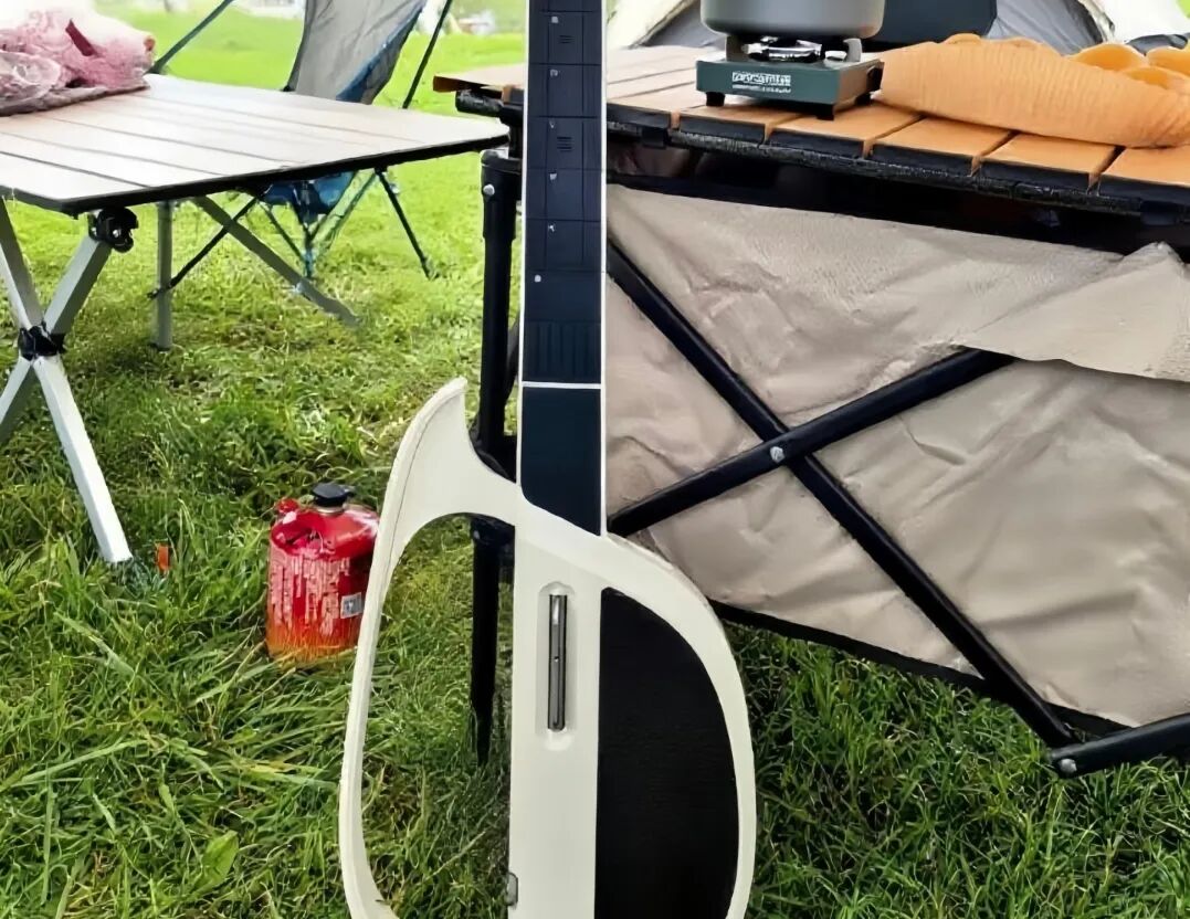 其次,便携性也是个不可忽视的巨大加分项。无弦吉他可以折叠、拆卸,仅占传统吉他四分之一的体积,方便携带至各种聚会场合。