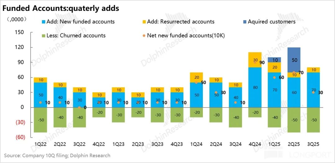 在平台交易更加活跃的情况下,罗宾汉已经正逐步把客群范围从原本几千客资、1-2 万客资的用户,进一步拓展到 5-10 万客资范围,破圈迹象明显。