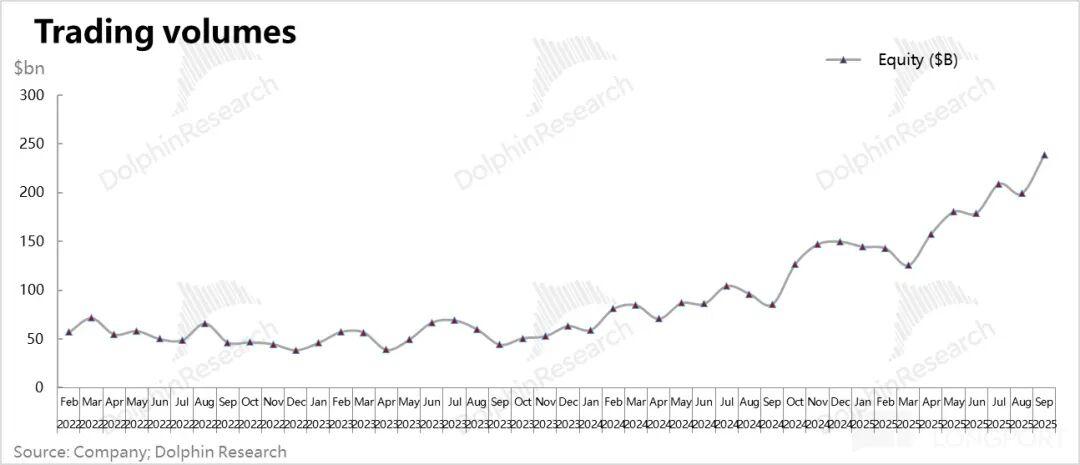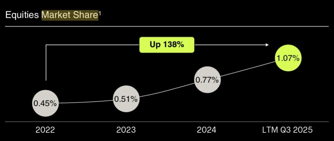 最后,Beta 牛中的 Alpha:2025 年对美股投资而言,无论是虚拟资产,还是权益资产,都是妥妥的牛市。而公司通过产品创新和品牌建设,聚集的又是风险偏好极高的用户。