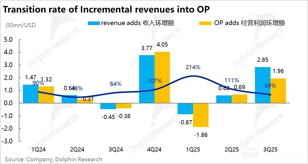 在收入环比增长接近 30% 的情况下,费用仅增 16%,而且其中包括因股价上涨,触发 CEO 管理激励所带来的额外薪资税,剔除这个因素,海豚君毛估算,它三季度的费用增长可能仅仅 6% 上下。