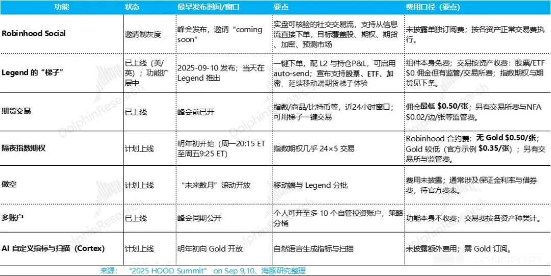 而在研发没有明显扩张的情况下,公司在 9 月 10 日的 HOOD Summit 2025 上,又发布了多项产品功能: