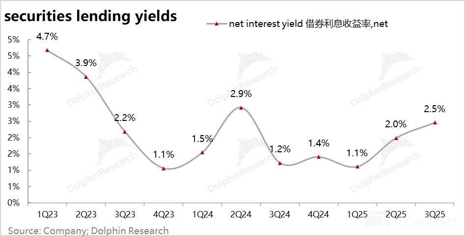 海豚君核算下来,三季度融券业务收益率 2.5%,相比二季度还有提升;同时公司贷出证券的总规模环比也提升了 24%。量价齐升驱动融券收入大幅放量。