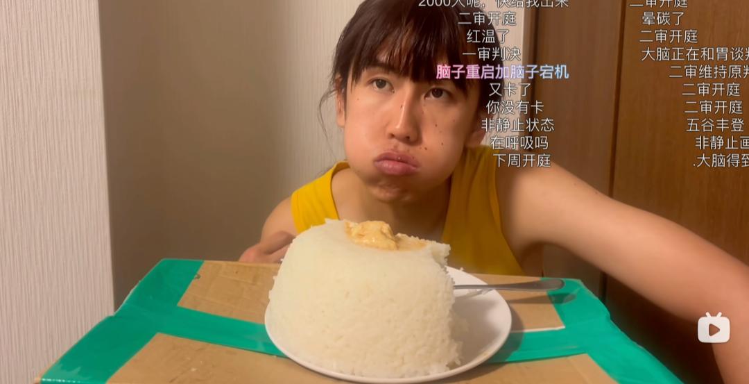 被调侃“过年了”的饭桌组合,则是香烤多春鱼、鸡蛋卷、萝卜干和电饭锅蒸出来的米饭,屏幕里的他吃得嘎嘎香,屏幕外的网友评论:“敢不敢放多点油”?