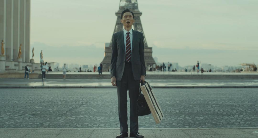 五郎在埃菲尔铁塔前上演“饿了”。(图/《孤独的美食家》剧场版)