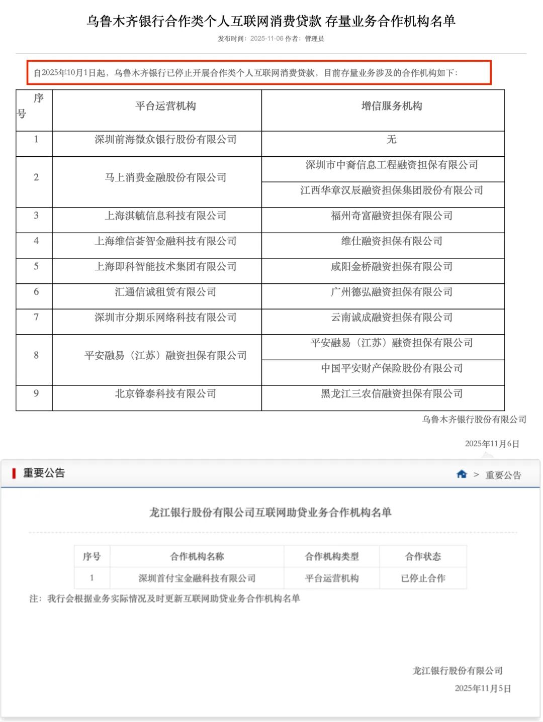 从这个角度看,乌鲁木齐银行和龙江银行明明已经停止相关业务,还得披露合作机构名单,可能传递出了另一个更为关键的讯号: