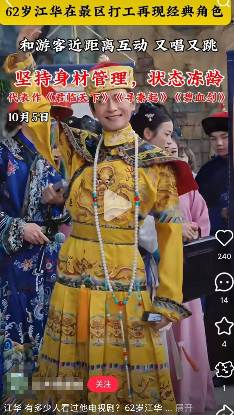 近来,一批曾活跃在荧幕上的熟悉面孔,突然出现在全国多个景区,成为网友热议的“明星NPC”,比如“帝王专业户”郑国霖、“老爷专业户”寇振海、TVB演员马景涛、李国麟、江华等。