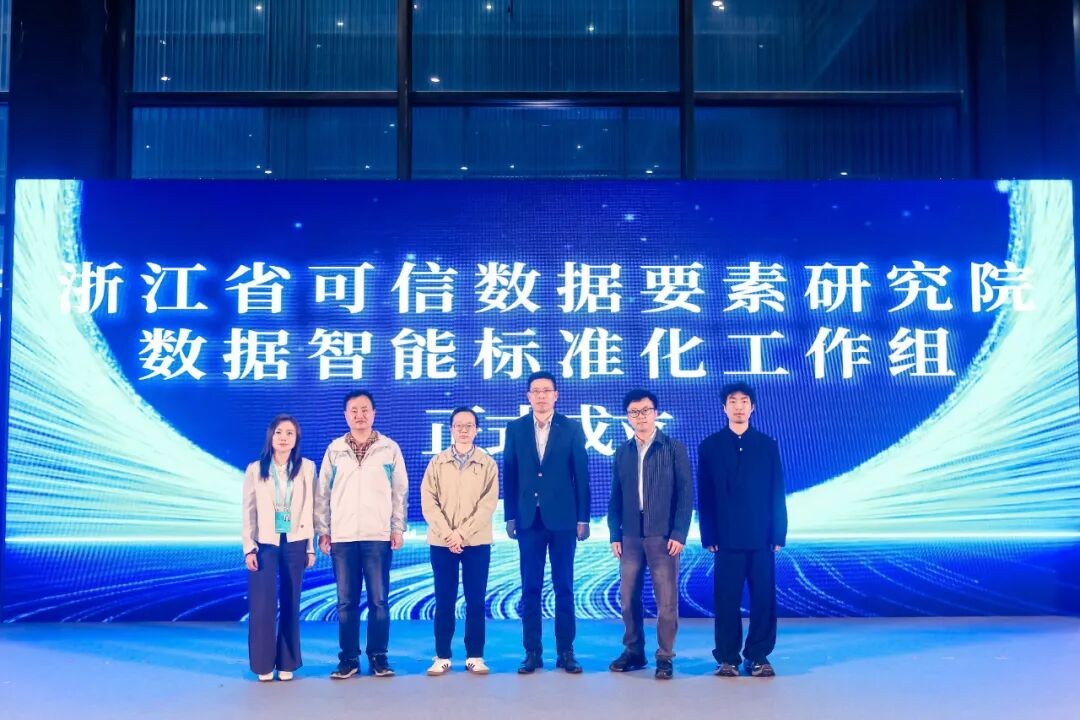 会议期间,“浙江省可信数据要素研究院数据智能标准化工作组”正式宣布成立。在成立仪式上,浙江省可信数据要素研究院标准部副主任江玥,浙江沪杭甬副总经理、之江智能总经理赵东权,蚂蚁数科市场部生态负责人关剑,海亮股份有色金属标准牵头人王继峰,中国电子云华东区副总经理王亚妮,熵池科技总经理李想六家单位代表共同参与发布,标志着数据智能领域的标准化建设迈出了关键一步。该工作组将聚焦数据智能技术、应用与管理的标准化需求,致力于构建统一、规范的行业标准体系。多家参与单位表示,将通过产学研用协同,共同推动数据智能技术更高效、更可靠地服务于产业升级与社会发展,为数字中国建设提供坚实支撑。