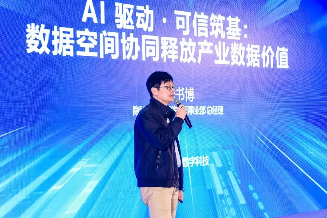 企业界的实践同样引人注目。蚂蚁数科隐私计算与可信空间事业部总经理李书博发表了《AI 驱动·可信筑基:数据空间协同释放产业数据价值》的专题演讲,他介绍到蚂蚁数科正推动可信数据空间向“智能运营”阶段演进,通过融入AI技术实现数据分类、合规审查与价值发现的自动化,以解决数据“如何用起来”的核心痛点。